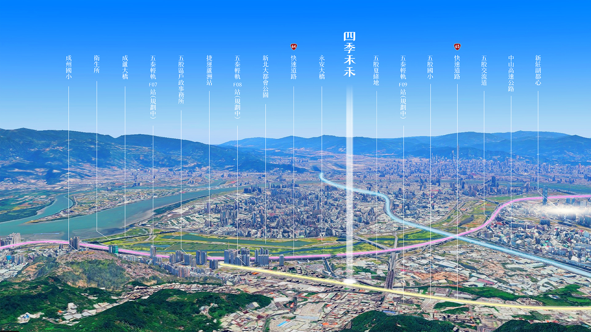 永安大橋下,你可以住更好。近64、65快速道路,串連板橋、中和新北核心區,直上國道瞬抵內湖科學園區及桃園國際機場,散步三分鐘到五泰輕軌F8預定站,串連環狀北環、新蘆、機場三捷運線,網羅洲子洋、塭仔圳、重陽、南港子四大重劃區,未來願景現在即可卡位。